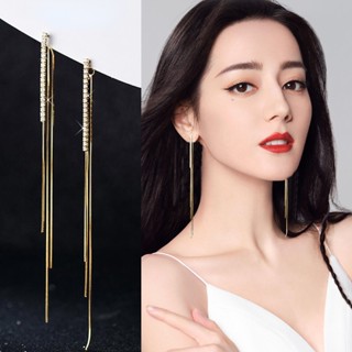 Bông Tai Mạ Bạc 925 Dáng Dài Phối Tua Rua Đính Đá Kim Cương Phong Cách Hàn Quốc