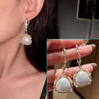 Bông Tai Bạc 925 Đính Ngọc Trai/Kim Cương Giả Phong Cách Pháp Ngọt Ngào Cho Nữ