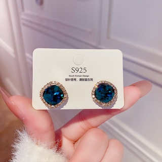 Khuyên Tai Hợp Kim Đính Đá Pha Lê Xanh Dương Hình Vuông Sang Trọng Dành Cho Nữ