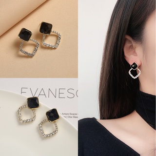 Bông Tai Mạ Bạc 925 Hình Học Đính Kim Cương Màu Đen Thời Trang Phong Cách Hàn Quốc Cho Nữ