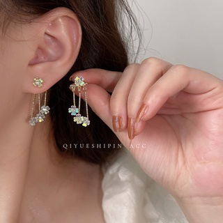 Bông Tai Mạ Bạc 925 Đính Đá Ngọc Trai Phối Tua Rua Phong Cách Hàn Quốc Thời Trang Cho Nữ