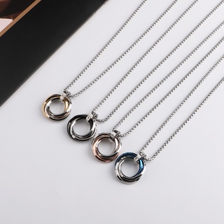 Simple Men's and Women's Triple Ring Necklace, Hip-hop Couple Pendant, Sweater Accessories, Tailored Sweater Necklaces