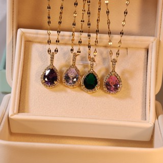 Vòng cổ Thép Titan Đính Đá zircon Toàn Diện Nhiều Màu Cho Nữ
