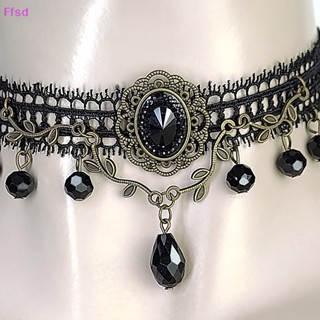 Vòng Cổ Choker Ren Màu Đen Đính Đá Pha Lê Phong Cách Gothic Punk Cho Nữ