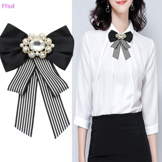 {Ffsd} Hàng Bán Chạy Trâm Cài Áo Sơ Mi Nữ Vải Canvas In Họa Tiết Sọc Và Nơ Đính Ngọc Trai Cổ Điển