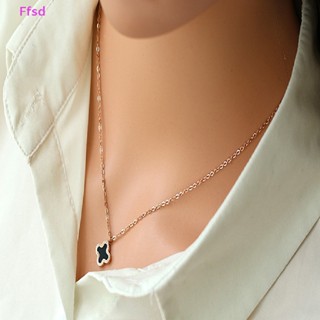 {Ffsd} Vòng cổ Hai Mặt Bằng Thép Titan Hình Cỏ Ba Lá Màu Vàng Hồng Trang Sức Làm Quà Tặng Cho Nữ
