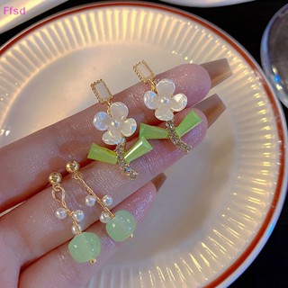 {Ffsd} 1 Đôi Bông Tai Dây Quấn Hoa Ngọc Trai Màu Xanh Lá Cây Thời Trang Đơn Giản Cá Tính Dành Cho Nữ * Bán Chạy
