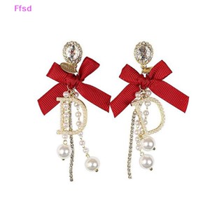 {Ffsd} Bông Tai Bạc S925 Dáng Dài Đính Pha Lê Và Ngọc Trai Hình Nơ Tua Rua Cá Tính