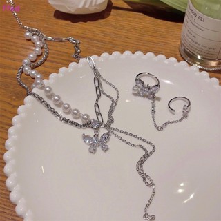 {Ffsd} Vòng cổ Nhiều Lớp Mặt Vòng cổ Pha Lê Bướm Đính Ngọc Trai Zircon Thời Thượng Cho Nữ