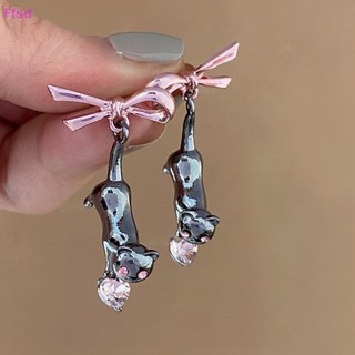 {Ffsd} Khuyên Tai Thả Hình Nơ / Trái Tim / Mèo Đen Đính Đá Ngọt Ngào Cho Nữ
