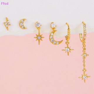 {Ffsd} Bộ 6 Bông Tai Xỏ Lỗ Đính Đá Zircon Pha Lê Hình Mặt Trăng Ngôi Sao Màu Vàng Cho Nữ