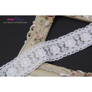 Ren trắng thêu hoa dày, bề rộng 3.2cm