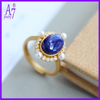 Nhẫn Hở Đính Đá Ngọc Trai Giả A7Jade S925 Phong Cách Retro