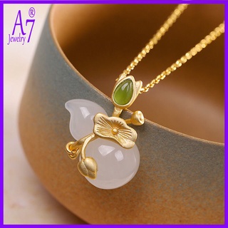 A77 | Vòng cổ Bạc 925 Mặt Hoa Sen Đá Ngọc Bích Trắng Phong Cách Vintage Mã Y1264