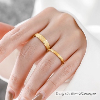 Nhẫn titan không gỉ mạ vàng 18k khắc họa tiết đơn giản thời trang hàn quốc