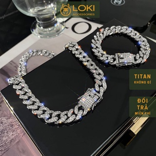 Dây chuyền lắc tay nam nữ unisex Cuban đá Loki Accessories hiphop đính đá lấp lánh thép titan không gỉ - Cuban đá