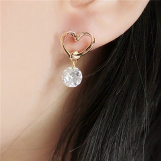 Khuyên tai, hoa tai nữ trái tim đính hạt đẹp, trẻ trung, phong cách Hàn Quốc