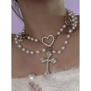 Shibuya Hyuna Vòng cổ Nhiều Lớp Mặt Thánh Giá Đính Ngọc Trai Phong Cách Hip Hop Nhật Bản Và Hàn Quốc Cho Nữ