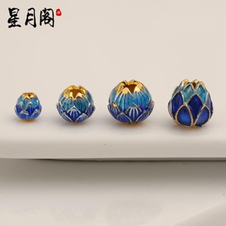 Cloisonne Chuỗi Hạt Tròn Tách Hạt Đồng Mạ Vàng Làm Trang Sức Thủ Công Màu Xanh Dương