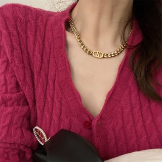 Vòng cổ Thép Titan Dày Mặt Chữ cd Phong Cách hip hop Âu Mỹ Cho Nữ