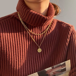 Vòng Cổ Dây Xích Đôi Mặt Khóa Tròn Đơn Giản Hợp Thời Trang Cho Nữ