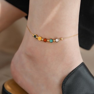 Lắc Chân Dây Xích Nhỏ Màu Vàng Đồng Cung Hoàng Đạo Năm Kích Thước Nhỏ Tinh Tế Màu Đỏ Rượu Vang Thủ Công se
