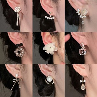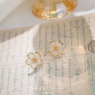 Bông Tai Hoa Trà! Bông Tai Hoa Trà! Bông Tai Mạ Bạc 925 Hình Hoa Trắng 14K Đơn Giản Ngọt Ngào Mới