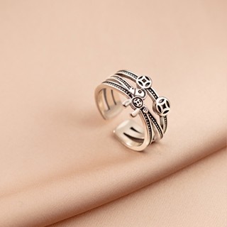 Nhẫn Mạ Bạc 925 Hình Đồng Xu Cổ Điển Có Thể Điều Chỉnh Kích Cỡ