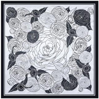 Khăn Quàng Cổ Hình Vuông 90cm Bằng Lụa Họa Tiết Hoa Màu Trắng Đen Phong Cách retro Chống Nắng Cho Nữ