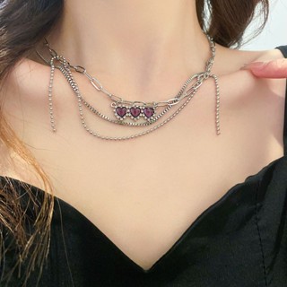 Vòng cổ Thép Titan Hai Lớp Tua Rua Phong Cách Hip Hop Phổ Biến Cho Nữ