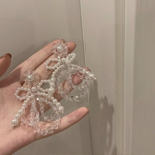 Bông Tai Dáng Dài Hình Nơ Phối Hoa Trong Suốt Đính Ngọc Trai Thời Trang Cho Nữ