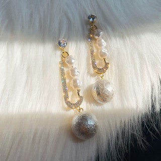 Bông Tai Mạ Bạc 925 Đính Kim Cương Và Ngọc Trai Nhân Tạo Phong Cách Hàn Quốc