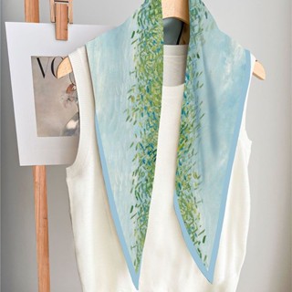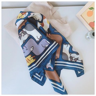 Khăn Quàng Cổ Lụa Hình Vuông In Chữ Mèo Kiểu Hàn Quốc Đa Năng Cho Nữ