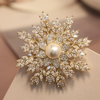 Ghim Cài Áo Hình Hoa Tuyết Đính Đá zircon Ngọc Trai Cao Cấp Phong Cách Hàn Quốc