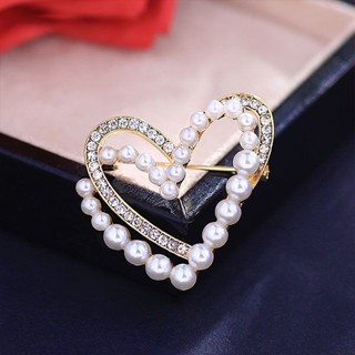 Ghim Cài Áo Hình Trái Tim Kawajiu Đính Ngọc Trai Giả Đơn Giản Thời Trang Cho Nữ