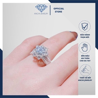 Nhẫn nữ xi bạch kim mặt đá cao sang chảnh, chuẩn bạc ý 925 - Anchi jewelry