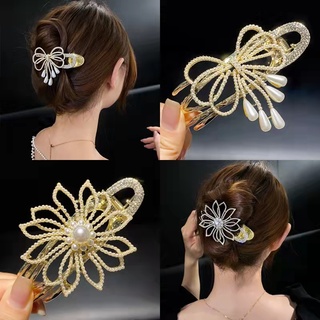 Kẹp Tóc Mỏ Vịt Xoăn Đính Kim Cương & Ngọc Trai Kiểu Hàn Quốc Cho Nữ