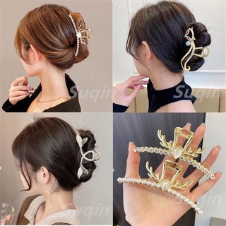 Kẹp Tóc Hình Cá Mập Đính Ngọc Trai Và Kim Cương Giả Phong Cách Hàn Quốc Mới
