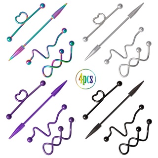 Bộ 4 Bông Tai Hình Trái Tim Bằng Thép Không Gỉ 14g