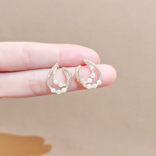 [Jiudoulan] Khuyên Tai Đính Ngọc Trai Zircon Lấp Lánh Thời Trang Hàn Quốc Cho Nữ
