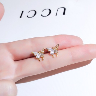 [Jiudolan] Khuyên Tai Dạng Kẹp Đính Đá Zircon Mặt Hình Bướm Thanh Lịch Tinh Tế Cho Nữ