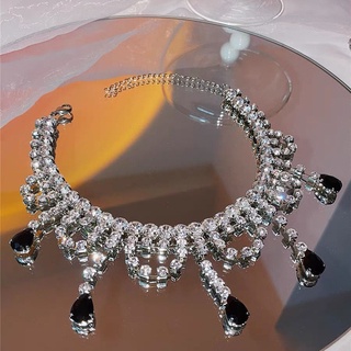 Toàn Bộ Vòng Cổ Tua Rua Giọt Nước Màu Đen Đính Kim Cương Lấp Lánh Sang Trọng Thời Trang Dự Tiệc Cao Cấp Cho Nữ