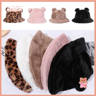 Mũ Bucket Chất Liệu Lông Giả Mềm Mại Họa Tiết Da Báo Ấm Áp Mùa Đông Cho Nữ