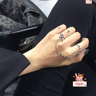 ROWANS Nhẫn Hợp Kim Hình Thánh Giá Màu Sắc Phong Cách Hip Hop
