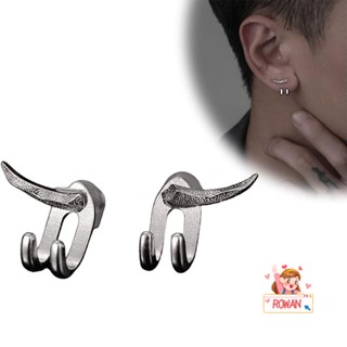 ROWANS Khuyên Tai Đinh Tán Kép Màu Bạc / Đen Phong Cách Punk Cá Tính Dành Cho Nam Nữ