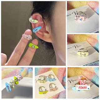 ROWANS Set 3 Khuyên Kẹp Vành Tai Đính Đá Pha Lê Nhiều Màu Sắc Tối Giản Cho Nữ