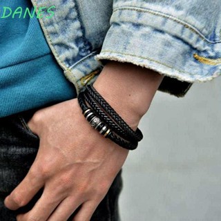 DANES Vòng Tay Da Bện Hai Lớp Với Mặt Hợp Kim Thời Trang Cho Nam