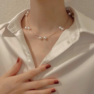Vòng cổ Hai Lớp Đính Ngọc Trai Thời Trang Dành Cho Nữ