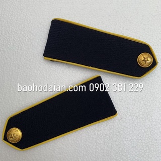 Cầu vai bảo vệ xanh dương viền vàng thêu, sao đồng, gạch đồng kèm ve áo TT08