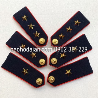 Cầu vai nền xanh đen, viền đỏ, gạch vàng sao bạc (1 cặp)